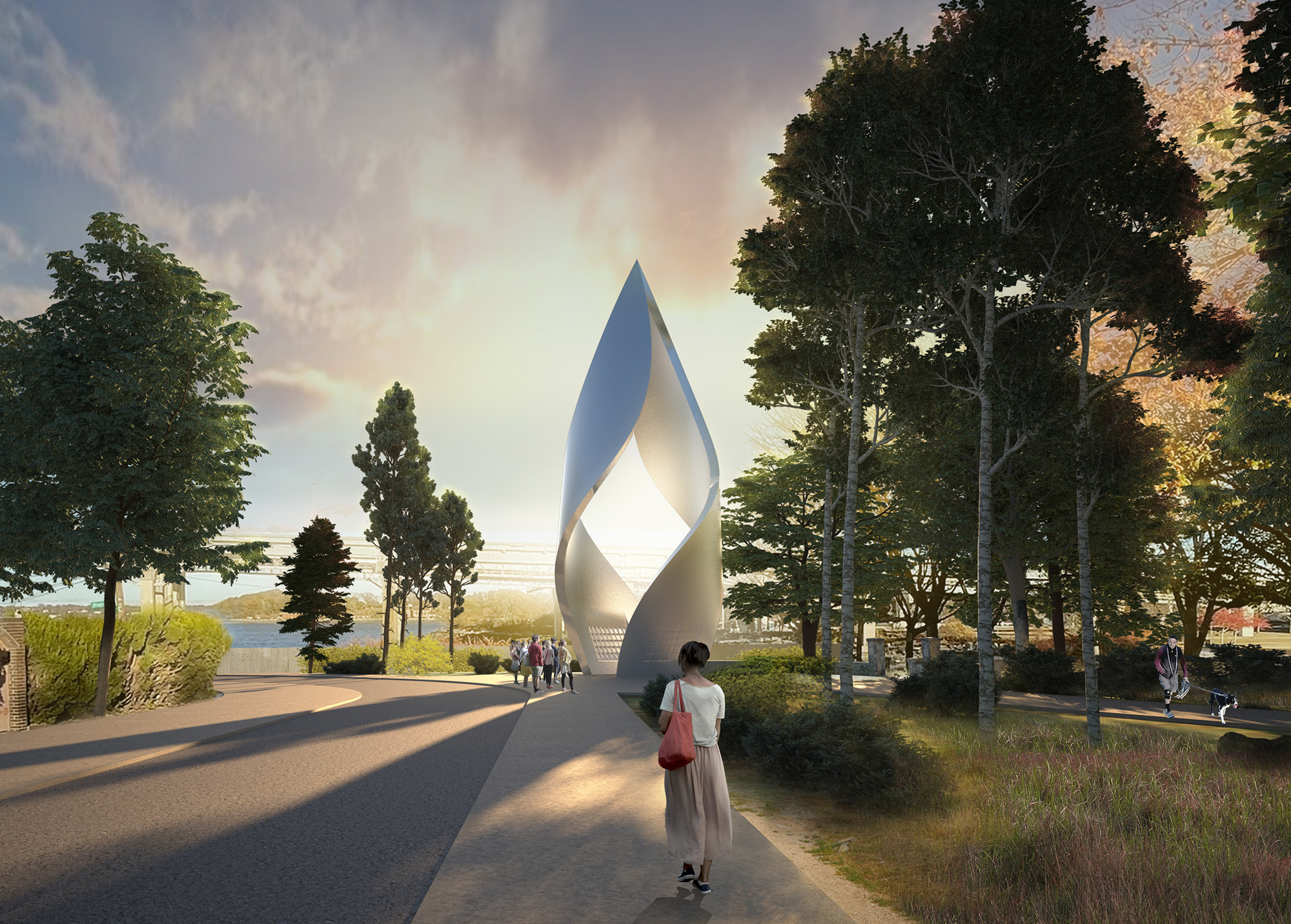 Clouds AO has been selected as one of four finalists for the Post 9/11 Fallen Service Member Memorial design competition organized by the City of New York. The design envisions to create a place that honors all the Service Members perished in the Global War on Terrorism. It is conceived of as space that tells stories of their priceless contributions and collective memories, and is composed with two spiral walls connected at top to symbolize embracement and eternity. Seen from various orientations, the form changes constantly to inspire various meanings.